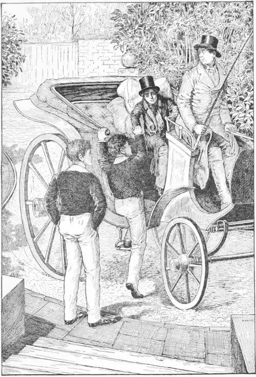 As they walked out they got a message to say "that Arthur was just starting and would like to say good-bye"; so they went down to the private entrance of the School-house, and found an open carriage, with Arthur propped up with pillows in it, looking already better, Tom thought.