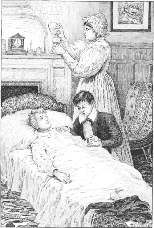 Meantime, Tom is stretched on the sofa in the housekeeper's room, with East by his side, while she gets wine and water and other restoratives.