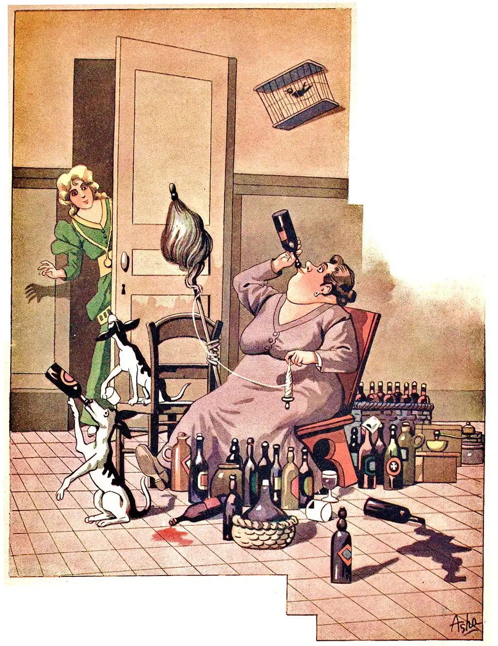 "What a distracting occupation!" the princess said upon seeing her, and as she was a lively person and the prophecy needed fulfillment, she took over the spindle and it went through her hand, and the old lady could not prevent it.