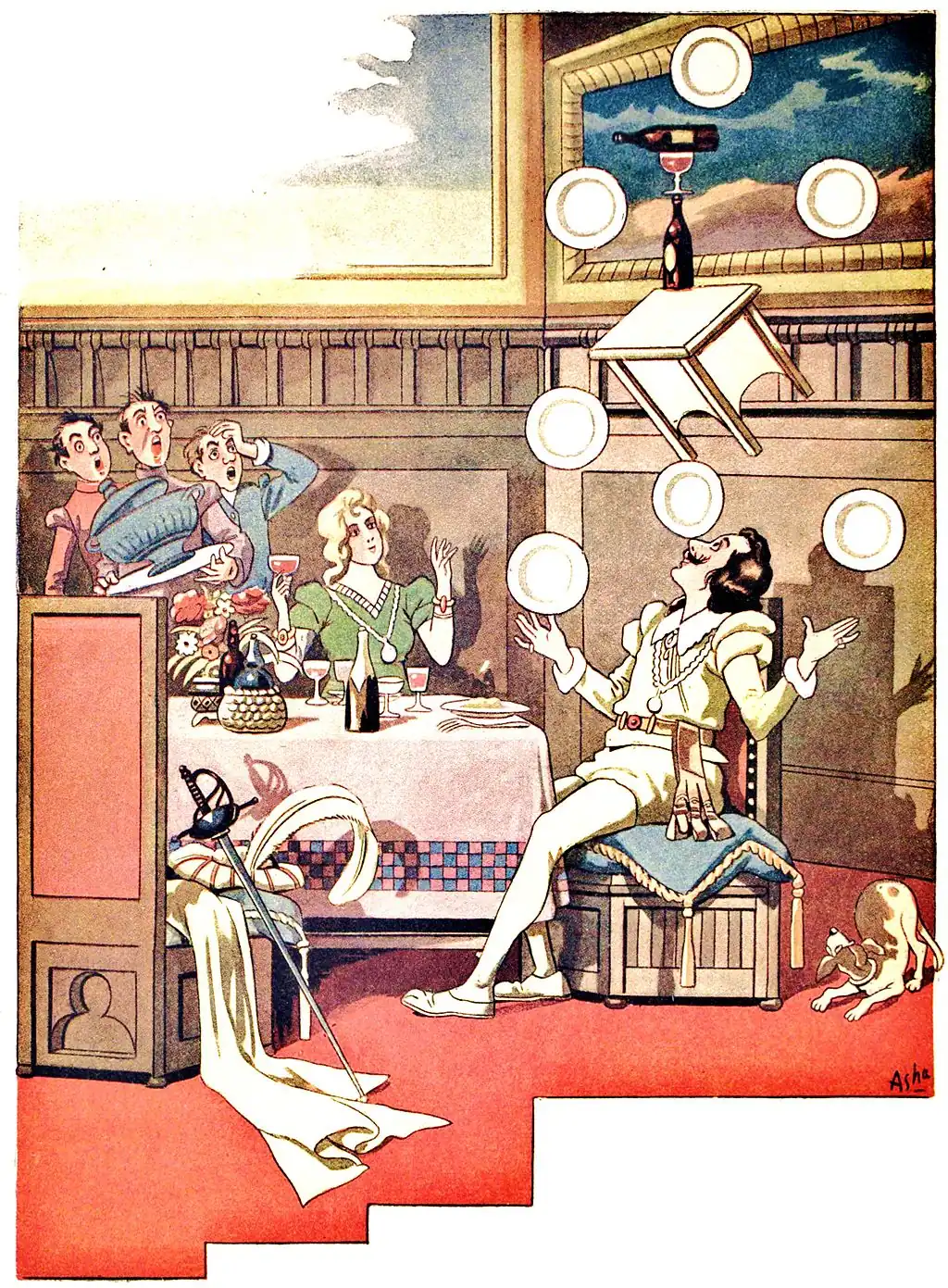 a sumptuous banquet was served in the palace and the Fairies ate with solid gold utensils trimmed with gemstones, given by the parents of the newborn. When the guests had sat in their seats at the table, there entered