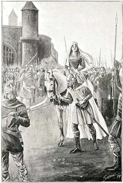 The brave young wife rode forth at the head of her whole garrison.