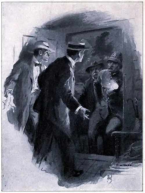 "You go, Gillon!" he said. "It's only somebody who's heard or seen us. Don't you think we smelt the gas through the letter-box, and wasn't it your duty"