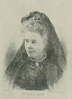 BOOTH, Miss Mary Louise, author, translator and editor, born in Millville, now Yaphank, N. Y., 19th April, 1831. On her father's side she is descended from John Booth, who came to the Colonies in 1649. Her mother was the granddaughter of a refugee of the French Revolution. Mary's talents were displayed in childhood, and she was yet only a girl when her first contributions were published. Her father was a teacher, and in 1845 and 1846 she taught in his school in Williamsburg, L. I. Her health failed and she was obliged to abandon teaching. She then turned to literature. She wrote many stories and sketches for newspapers and magazines, and translated from the French "The Marble-Worker's Manual" (New York. 1856), and "The Clock and Watch Maker's Manual." For "Emerson's Magazine " she translated Mery's "Andre Chenier" and About's "King of the Mountains," and for that journal she wrote a number of stories. She translated Victor Cousin's "Secret History of the French Court; or. Life and Times of Madame de Chevreuse" (1859). The first edition of her "History of the City of New