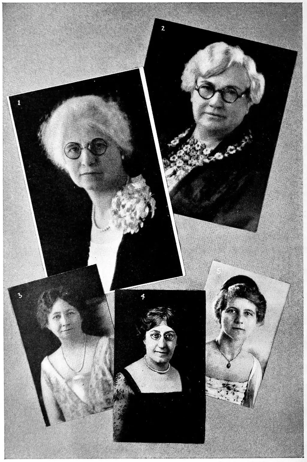 1. C. Louise Boehringer, educational journalist; 2. Mattie L. Williams, Arizona State President, United Daughters of Confederacy; 3. Marie Bartlett Heard, active club and civic worker; 4. Margaret Wheeler Ross, writer; 5. Edith O. Kitt, secretary of Arizona Pioneers' Historical Society.