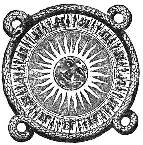 This century, or cycle, contained fifty-two years, divided into four periods of thirteen years each. Two of these centuries made up an "old century"—Huehuetiliztli—of one hundred and four years. Their years had four names only, they were: Tochtli, the Rabbit; Acatl, the Cane, or Reed; Tecpatl, Flint; Calli, House. The first year of the century was (1) Tochtli; the second (2) Acatl; the third (3) Tecpatl; the fourth (4) Calli; while the fifth was (5) Tochtli; and so on to the thirteenth year, which ended with Tochtli. The second period, of course, began with Acatl, the third with Tecpatl, the fourth with Calli. By this ingenious arrangement there was no repetition of the symbols and their corresponding numbers and no confounding of the years one with the other. Now, as a century was completed, they called the end of it by a name, Toxiuhmolpia—signifying the "tying-together-of-the-years," because at this time the two centuries were united to form an age. On the last night of the century, terror and anxiety prevented every one from sleeping, even had it been allowed by the laws. All the fires were extinguished, both in temples and houses, and all articles for domestic use, especially earthenware and kitchen utensils, were broken and destroyed. Some hours before midnight "the priests, clothed in various dresses and insignias of their gods, and accompanied by a vast crowd of people, issued from the temple out of the city, directing their way towards a mountain—Huixachtla—near the city of Iztapalapan, a little more than six miles from the capital. They regulated their journey in some measure by observation of the stars, in order that they might arrive at the mountain a little before midnight, on the top of which the new fire was to be kindled. In the meantime, the people remained in the utmost suspense and solicitude, hoping, on the one hand, to find from the new fire a new century granted to mankind, and fearing, on the other hand, the total destruction of mankind if the fire by divine interference should not be permitted to kindle." The faces of the children were covered, and they were not allowed to sleep, to prevent their being transformed into mice. All those who did not go out with the priests mounted upon roofs and terraces to observe from thence the event of the ceremony.