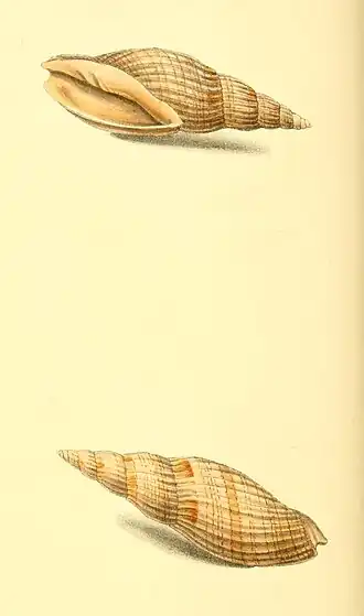 - Shell with regular, carinated, approximating, longitudinal ribs. Pillar striated, three-plaited near the base. Spire somewhat attenuated. Apex slightly papillary.