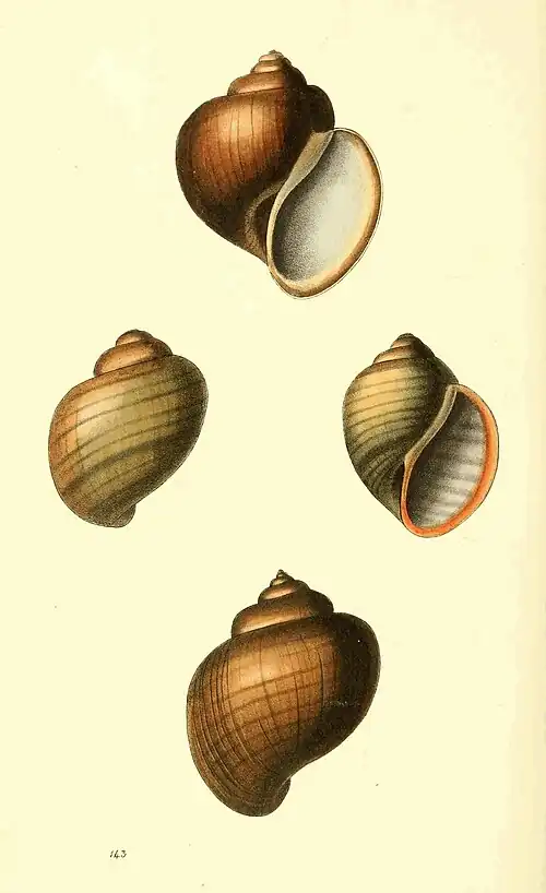 - Shell oval, minutely punctured, spire obtuse; margin of the exterior lip within, and base of the inner lip thick and rufous; operculum horny?
