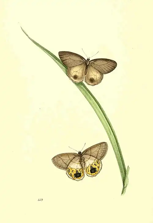 The insects of this genus are usually brown, with dark or paler shadings, and eye-like spots on their upper or under wings. They principally inhabit the woods of tropical regions, and the hedge sides and lanes of European countries; this circumstance probably induced Latreille to change their name from Hipparchia (Fabricius) to Satyrus; which, although an innovation on the rules of nomenclature, may in this instance be allowed.