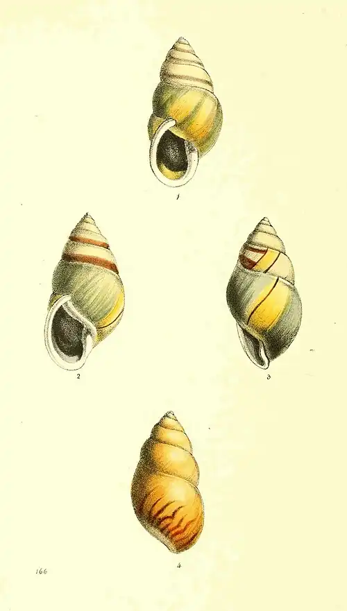 - D. Green, striped with yellow; inner lip white. Fig. 2. 3.