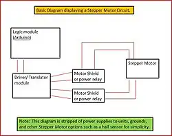 There are also some differences you will see internally on a stepper motor as opposed to a regular DC brushless motor. One main feature is the stepped rotor as opposed to a smooth magnetic rotor. Because of these differences the Arduino Uno can only be used as a logic module for a stepper motor circuit. A driver module will be needed to complete operation of a stepper motor. This is because to hold the rotor in individual positions a map of different voltages needs to be executed on the magnets to accurately rotate the motor. Without this your motor will most likely not work or will just spin weakly.