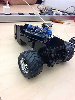 • We chose a body for our robot. An old R/C car works as a perfect pre-existing structure for us to build around.