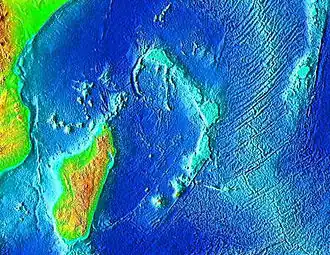 The southern part of the Mascarene plateau, also known as the Southern Mascarene plateau (SMP), was formed by the Réunion volcanic hotspot along with the Chagos-Laccadive Ridge.[6]