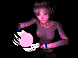 The sphere of the glowing "crystal ball" was selected and a new D-Former was created. The force field for the D-Former was scaled to a smaller size in order to pull a small spike outwards from the surface of the sphere, just as explained in detail for the "horn" tutorial in the DAZ Studio manual's chapter on D-Formers. This first D-Former could be used to pull a spike-like projection of the sphere towards Aiko's chest (see Figure 3). However, this first D-Former was converted into a morph for the sphere (and named "spike"), and the resulting morph slider was used in combination with a second D-Former, as described below. Refer to the DAZ Studio manual chapter on D-Form for details on how to convert a D-Former into a morph slider for an object like this sphere.