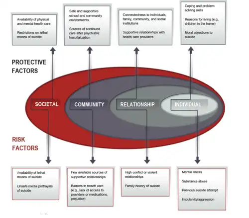| Behaviours and other factors | History of mental or substance use disorders, sexual identity issues, social isolation or rejection by peers, or living alone, recent discharge from a psychiatric hospital, situational crises such as academic crisis or school failure or breaking up with a romantic partner. |
