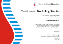 The Center for Global Nonkilling will be offering a Certificate on Nonkilling Studies to those who complete Program requirements. These will include a series of readings to be organized in a learning resource (soon!) plus course work that will either create or expand nonkilling contents focusing on a new aspect to be included at the School of Nonkilling Studies or the significant development of one or more entries.