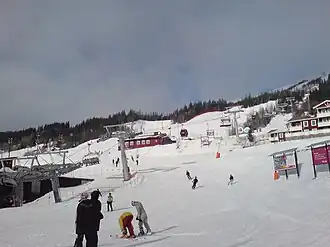 The ski area is on the Åreskutan mountain with its highest peak at a height of 1420 m, but the highest lift ends at 1260 m, so the peak has to be reached by a snowmobile lift. The village and ski area are accessible by bus and train.