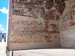 - ๐ Parroquia San Nicolas Tolentino, Lerdo de Tejada, Centro, โ +52 7727283580. Actopan's oldest church was established as an Augustinian monastery, built between 1550-1570. The church has some remarkable 16th century religious artwork inside but is most noted for a unique outdoor chapel decorated with murals painted by indigenous artists in the 1550s. These murals have degraded significantly in the intervening centuries but are remarkable in the way they fuse indigenous Mexica elements with the newly enforced Christian themes being proselytized by the Spanish. The convent too has some remarkable artwork done by European artists featuring elaborate patterns and interpreting biblical passages in more Euro-centric ways. Inside the high cloister of the ex-convent is the Museum of Religious Arts which showcases mostly art from the 19th century with some fascinating exhibits on religious symbology. The collection includes a large number of sculptures, paintings and other religious artifacts. The museum is open 09:00 - 17:00, except Monday, when it is closed.