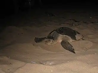 - Sea turtle watching. Every year from August to February the Leatherback turtle, Green turtle and Olive Ridley turtle lay their eggs at the seashore. The main nesting areas are the islands/sandspit between the two estuaries and beaches westward of the estuary. Visitors can witness this fascinating sight of the huge turtles coming out of the water and nesting in the sand. Night tours are organized by the Wildlife Division.