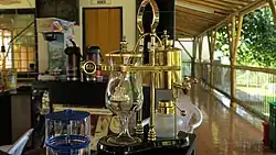 - Restaurante Cafe Quindio Gourmet (www.cafequindio.com.co), Carerra 14, #7N (Ave. Bolivar) (Adjacent to the Parque de laVida, and across the street from Hotel San Martin in the upscale university area), ☏ +57 6 749 5970. 11:00 - 22:00. A dining experience in a clean, modern setting with outdoor seating under a large canopy in addition to the inside tables. Not pricey by U.S. or European standards, exotic appetizers and salads are priced from COP$9,500-16,500, and beef, pork, chicken, seafood, and pasta entrees are COP$18,000-34,500. Beverages include natural fruit juices, coffee, beer, wine, and scotch. A great venue for a first date with a lovely senorita, or your significant other. There are also Quindio coffees, coffee cookies, and gift sets available in the gift shop. The gracious owner, Jaime Moreno Motta, is likely to personally greet you, especially if he hears you speaking English, in which he, and several of his staff are fluent. $$$.