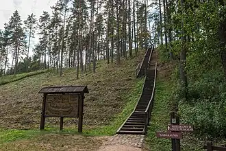- Piliakalnis means a castle mound and they dot the landscape of Lithuania, especially in rural regions. They're hummocks, artificial though taking advantage of natural features such as an outcrop or glacial moraine, and originally reinforced by wooden palisades. Some were rebuilt as stone castles from about the 12th century but none of those in the park were of sufficient value, so they just became look-outs and kiddy toboggan runs.