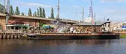 - 🌍 Badeschiff, Eichenstraße 4. An old cargo ship hull converted to a fresh-water swimming pool, anchored permanently on the river Spree. Provides a nice opportunity to swim on the Spree, without actually swimming in the river itself, which is far too polluted. A bar with disco DJ music is situated just next to the pool. In winter time, the pool is covered against the weather. entrance €8, requires pre-booked time slot, charges for drinks.