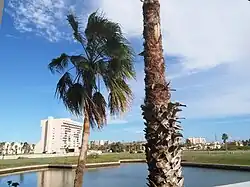 As you make the drive from Kingsville, you will start to see an abundance in palm trees. The area is known to tourists as "The Green City" for having more lush, green vegetation and plants than other cities in the Rio Grande Valley and South Texas. Sabal palms are dotted all around the city. The city has a strong focus on greener resources. Wind turbines, bike trails and solar panels are becoming more common in the Brownsville area.