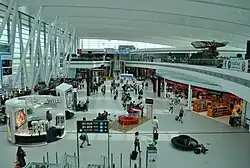 🌍 Budapest Franz Liszt International Airport (BUD IATA Budapest Liszt Ferenc Nemzetközi Repülőtér pronounced "list-ferents", often still called by its old name Ferihegy) (It's located about 16 km (9.9 mi) south-east of the city centre), ☏ the central information number is ☏ +36 1 296-9696 or ☏ +36 1 296-7000. Luggage services can be contacted on ☏ +36 1 296-5965. Hungary's chief airport. All flights use Terminals 2A and 2B. Terminal 1 was closed in 2011. There's no practical distinction between Terminals 2A and 2B, and they're freely connected landside by corridors and airside by "SkyCourt" food & retail area. (Originally 2A served Schengen Area destinations, and 2B the rest of the world, but this has been dropped.) Check-in and bag-drop desks 1-30 are in Hall 2A and desks 31-60 in Hall 2B, but do not correspond to the gates. This means that if 2A has a long line for security, you can get airside through 2B (and vice versa), as both lead into the SkyCourt.
