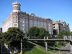 : 'Széll Kálmán tér'). Protected Monument Building. A landmark of Szell Kalman square hilly side.