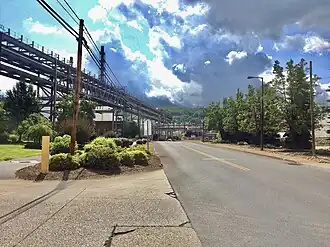 After crossing the bridge, bear right onto Pike Street.