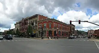 At the west end of downtown, in front of the brick Emery Towers building, Main Street ends at the corner of South Avenue. Make a left.