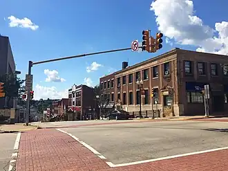 - If you're doing the itinerary south-to-north, take Pleasant Street from University Avenue to Spruce Street, then turn left, proceed four blocks, and rejoin the above-described route at Willey Street. Both of these sets of directions represent the original routing of the Buffalo-Pittsburgh Highway: that most of downtown Morgantown's streets are one-way was as true in 1926 as it is today.