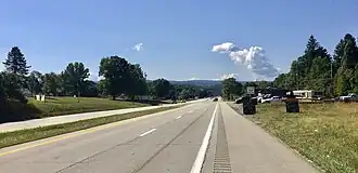 Turn left on Wildwood Avenue and then stay straight for about six and a half miles (10.3 km) through the Town of Great Valley, following the signs for State Route 417 east and U.S. Business Route 219 south. At the split, turn right to stay on Business 219 and continue straight toward and past the onramps to Interstate 86. You're now on the mainline of U.S. Route 219.
