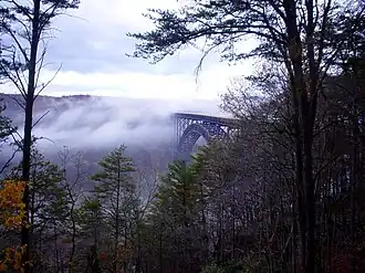 Cross the bridge over the Cheat River.