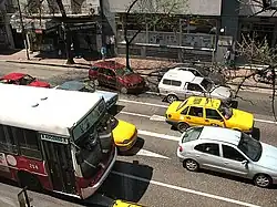 - Amarillo (Yellow, corridors 4 southwest/north and 5 west/east). The bus line number is a combination of the corridor number and the line's number, e.g. 40 or 51. A few lines have different routes, but this is much less an orientation problem than in Buenos Aires.