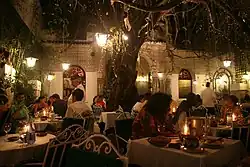 - La Corrida, 59 Rue el Araar, ☏ +212 22 27 81 55. From the outside, it's easy to miss this restaurant, but look for the little sign ringed in blinking lights. It has a nice outdoor courtyard, but the inside is the main attraction. It's decorated like with memorabilia from Spanish bull fighting tournaments and has a dark, candle-lit vibe that's perfect for dates. The sangria is tasty, as is the Tapas menu (which changes daily). Seafood is the specialty, and the steamed mussels should not be missed.