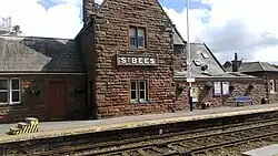 St Bees has a station on the Cumbrian Coast rail line. From the West Coast Main Line, change at Carlisle or Lancaster off the west Coast main line, or at Barrow-in-Furness. There are, as of 2013, 21 stopping passenger trains a day. The station is on the Main Street in the centre of the village, where there are three pubs within 5 minutes' walking. It is a 20-minute walk to the official start of the Coast to Coast walk at the main beach.