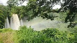 - Agbokim Falls. The Agbokim Falls on the Cross River descend in about 7 plunges over a cliff in the tropical rainforest.