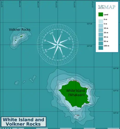 The island is roughly circular, about 2 km (1.2 mi) in diameter, and rises to a height of 321 m (1,053 ft) above sea level. However this is only the peak of a much larger submarine mountain, which rises up to 1,600 m (5,249 ft) above the nearby seafloor, making the largest volcanic structure in New Zealand.
