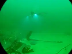 There may be slight currents, and the biggest hazard from this is not finding the wreck. These may change over a short period, and can be strong enough to require mild effort to remain in place near the bottom. Currents of this strength may be associated with incoming tide and deteriorating visibility, and are known to set east on some occasions.