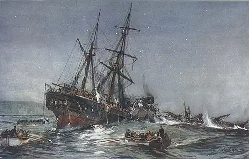 The name "HMS Birkenhead" is the name of the ship wrecked on 26 February 1852 at this site.
