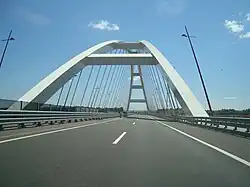 Dunaújváros is on the M6 (Budapest-Pécs) motorway, which has three exits in the city. South of the city it intersects with the M8 motorway, which here only consists of the Pentele híd, which connects the M6 with the other bank of the Danube at Dunavecse . Both the M6 and the Danube bridge of the M8 require a vignette. Coming from Székesfehérvár you do not drive on the motorway, but directly on trunk road 62.
