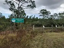 The sign for the northern entrance to the Scottsmoor Flatwoods Sanctuary, visible from the trail.