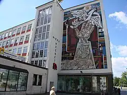 - 🌍 German-Polish-Soviet Friendship (Deutsch-Polnisch-Sowjetische Freundschaft), Lindenallee 2A. Perhaps the most famous piece of Socialist Realism in Eisenhüttenstadt, created in 1965 and located on the backside of the former department store "Magnet". It was created by Walter Womacka, who was also responsible for similar architectural artworks in Berlin's district of Mitte.