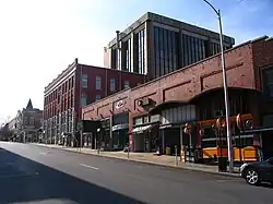 Fayetteville's core area of interest centers around the historic downtown square and Dickson Street, which runs between Highway 71B (also known as College Avenue) and the University of Arkansas campus, and is the "main drag" for restaurants and bars. This area can be flooded with people during the very popular Razorbacks college sports games, or during a number of festivals, the biggest of which is the Bikes, Blues, and BBQ Festival. This downtown area, along with the UofA campus and a few historic neighborhoods on either side, is quite walkable. The rest of town, including several strip-mall shopping districts that extend along the highway and residential neighborhoods, is less accessible except by car; bus service is available, but is limited.