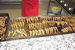 Vegetables baked with cheese or vegetables with bechamel sauce are often offered as vegetarian dishes. The composition of the vegetables varies according to the restaurant and season.