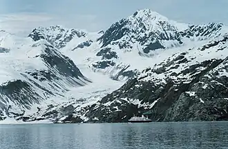 Most visitors to Glacier Bay see the park from large cruise ships with thousands of passengers. These visitors do not go ashore in the park; instead, National Park Service naturalists board the ship to share their knowledge about the park and its wildlife during a day-long cruise in the bay.