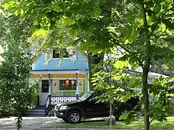 - 🌍 Grimsby Beach cottages (Gingerbread cottages) (north of QEW near Bartlett Avenue North exit). Private dwellings visible from the street. In a cute neighbourhood of cottages, a few cottages (dubbed "gingerbread cottages") are very colourfully painted giving them a fairytale look. The streets of interest are Fair Avenue between Betts Avenue and Wesley Avenue, Auditorium Circle and Temple Lane.