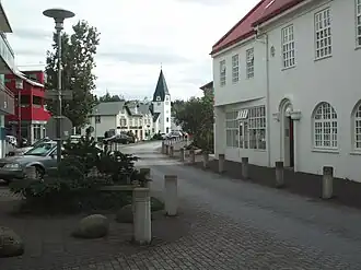 Hafnarfjörður (literally, harbour fjord) is a town in Southwest Iceland with a population of 30,000. The town was built atop lava fields that erupted 12,000 years ago. Hafnarfjörður was first settled in the late 14th century, a long history as a town by Icelandic standards, although today it is considered a suburb of Reykjavík. Hafnarfjörður is the westernmost town in the contiguous urban area of the capital.