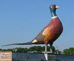- World's Largest Pheasant. Highway 14 east of town atop the Huron Liquor Store.