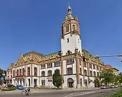 - 🌍 Town hall (Városháza), Kossuth Lajos utca 1 (Szent János térre). Built between 1909 and 1911 in the Art Nouveau style. The attic and gables of the two-storey, representative building with a tower on the southeast corner are decorated with Zsolnay ceramics.